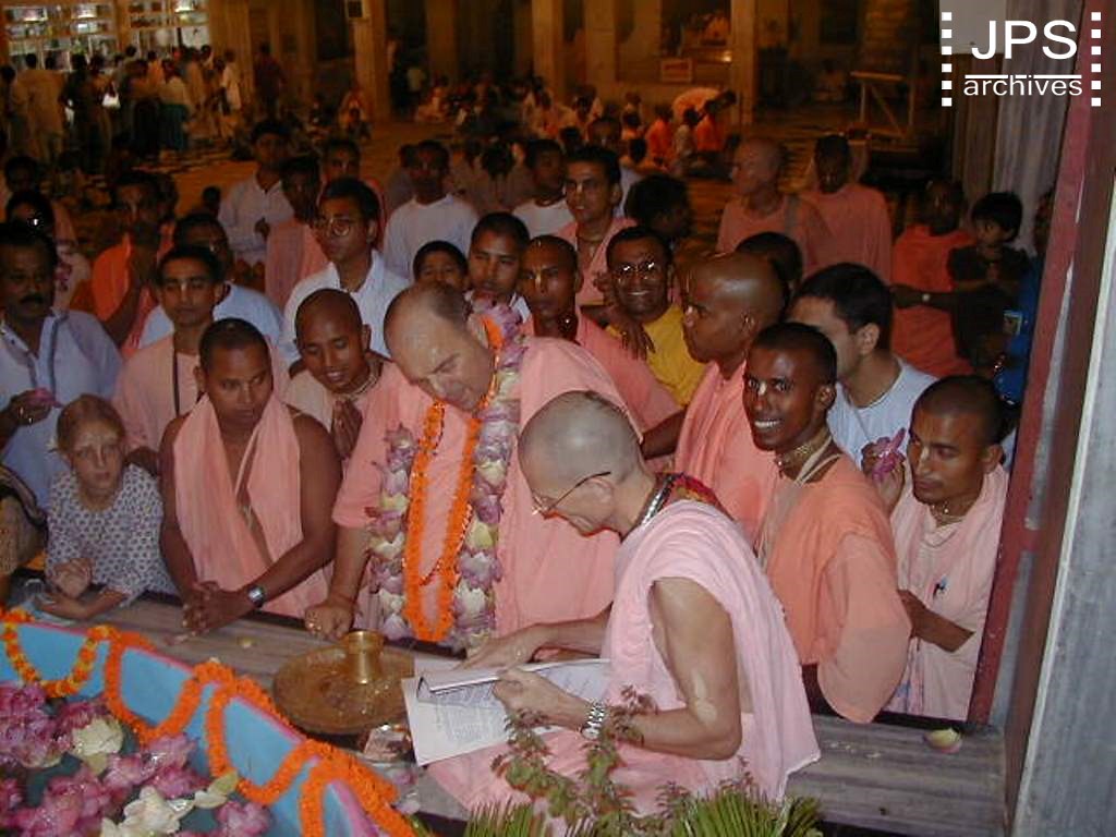 2001-05-08 Sri Mayapur Dham (His Holiness Jayapataka Swami Maharaja Visits Juhu & Chowpatty Pushya Abhishek, India © JPS Archives)